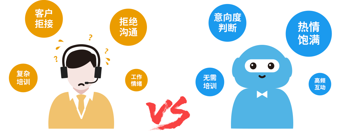 当企业从各渠道获取到销售线索,第一时间安排人工进行电话跟进筛选意向客户时,较高的拒接率和拒绝沟通率是一大障碍。 这不仅影响销售人员的工作情绪,还往往会对意向客户的筛选造成误判。