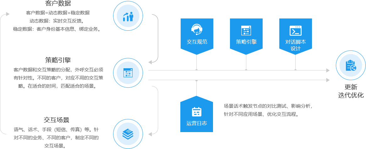 为了能让外呼中心和终端客户之间的语音沟通更加自然、有针对性,我们利用了强大的AI技术。通过对交互数据持续积累,策略引擎不断迭代优化,以及根据不同的客户需求,对交互场景做适应性定制,让智能外呼真正实现了千人千面的个性化交互。