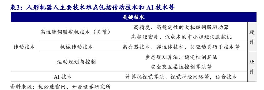 从目前特斯拉公布的应用范围来看,人形机器人为服务机器人的技术升级,涉及到自动驾驶、视觉导航、传感器技术等多种技术融合,机械产业链方面主要涉及到伺服电机、减速机、控制系统、驱动器与机器视觉等方面。