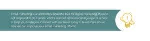 Email marketing is an incredibly powerful tool for digital marketing. If you’re not prepared to do it alone, ZGM’s team of email marketing experts is here to help you strategize. Connect with our team today to learn more about how we can improve your email marketing efforts!