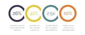 - The clickthrough rate (CTR) is 2.5x greater in personalized emails.